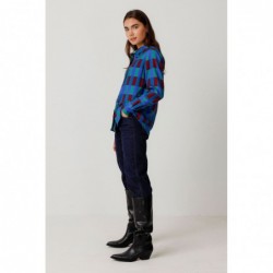 Camisa de corte reto com gola clássica, mangas compridas com punhos abotoados e fechamento frontal com botões para maior praticidade. Estampa geométrica multicolorida.