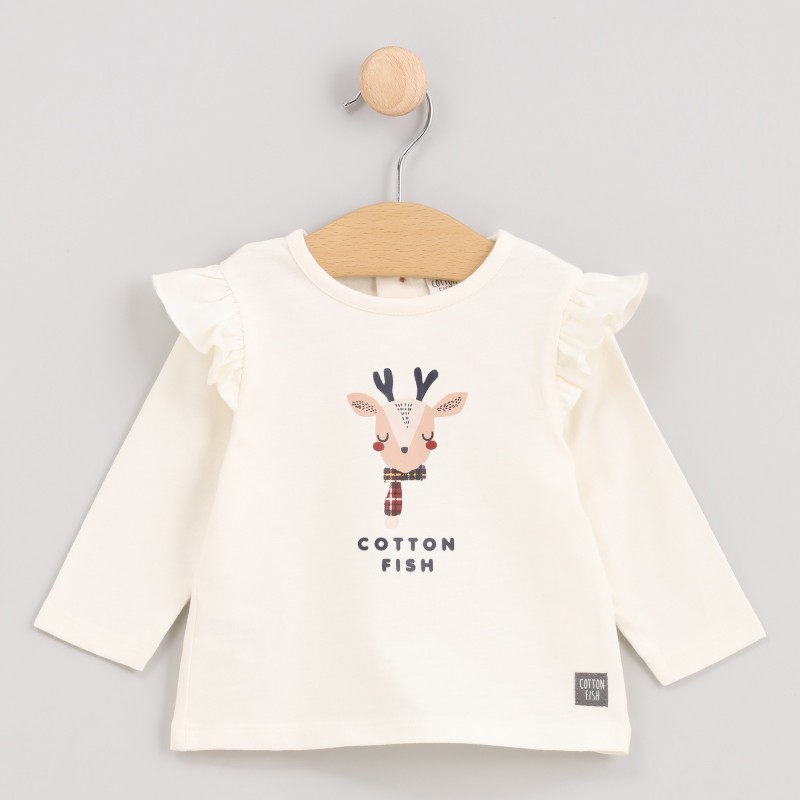 Camiseta de Natal de manga comprida com babados e estampa de rena