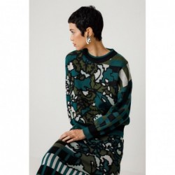 Suéter estruturado em malha jacquard com gola redonda, mangas morcego e punhos canelados. Uma peça confortável e elegante. Algodão orgânico com certificação GOTS.