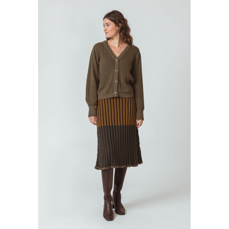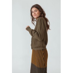 Suéter de manga comprida com botões e decote em V, feito com malha de algodão orgânico com certificação GOTS e FAITRADE®. De cor preta. Ser certificado é uma sensação ótima. O Comércio Justo® é uma forma de fazer negócios que garante que os agricultores na origem do nosso algodão recebam um pagamento justo; Também lhes concede subsídios para desenvolver projetos comunitários. O GOTS é reconhecido como o principal padrão global para processamento de têxteis feitos de fibras orgânicas. A modelo veste tamanho 38 e tem 1,73 m de altura.