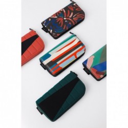 Carteira em algodão reciclado com fecho de correr, compartimentos internos para cartões e porta-moedas. Um acessório sustentável e prático.