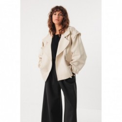Jaqueta biker folgada com mangas removíveis. Fecho frontal com zíper, punhos elásticos, bolsos frontais e exterior impermeável.