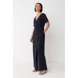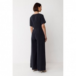 Macacão palazzo. Possui decote em V, bolsos laterais e fechamento frontal com botões. Comprimento total no tamanho 38: 148 cm.