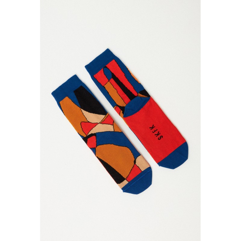 Meias de algodão até a panturrilha. Construção canelada, confortável e macia, com efeito antiderrapante.