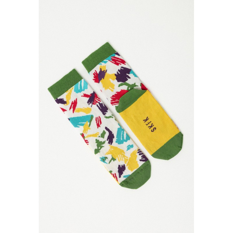 Meias de algodão até a panturrilha. Construção canelada, confortável e macia, com efeito antiderrapante.
