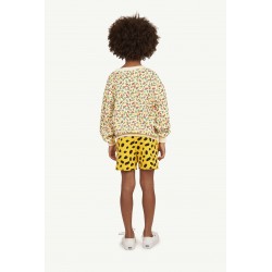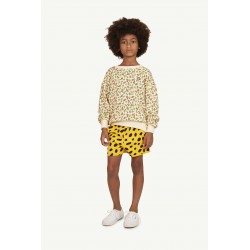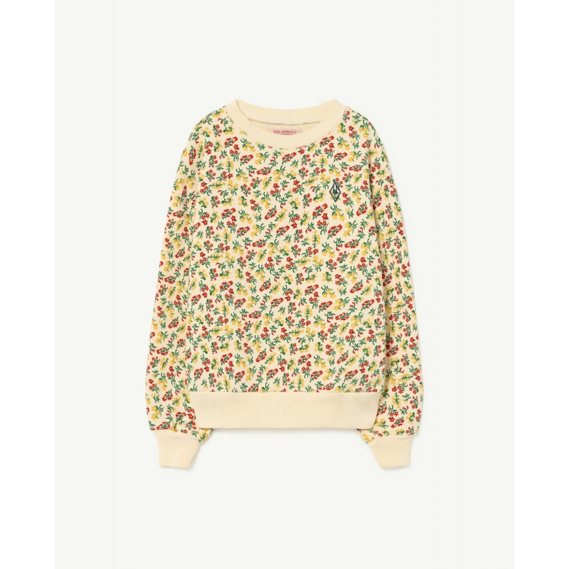 O moletom Bear Flowers tem uma linda estampa cheia de flores vermelhas e amarelas por toda parte. Esta peça é perfeita para o aquecimento diário e apresenta o logotipo da na frente. Solto, feito de 100% algodão e confortável. A modelo tem 135 cm de altura e veste tamanho 8 anos.