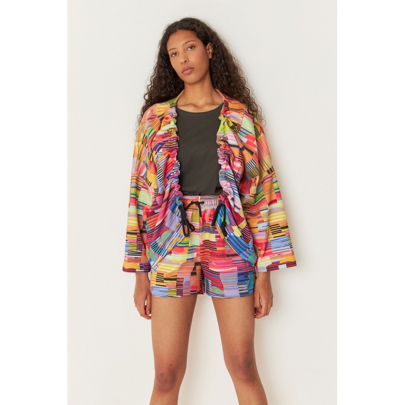 Kimono de moletom com corte reto e bolsos frontais. Colaboração com o artista Grems.