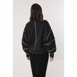 Moletom oversized com gola canoa e mangas longas, decorado com debrum colorido.