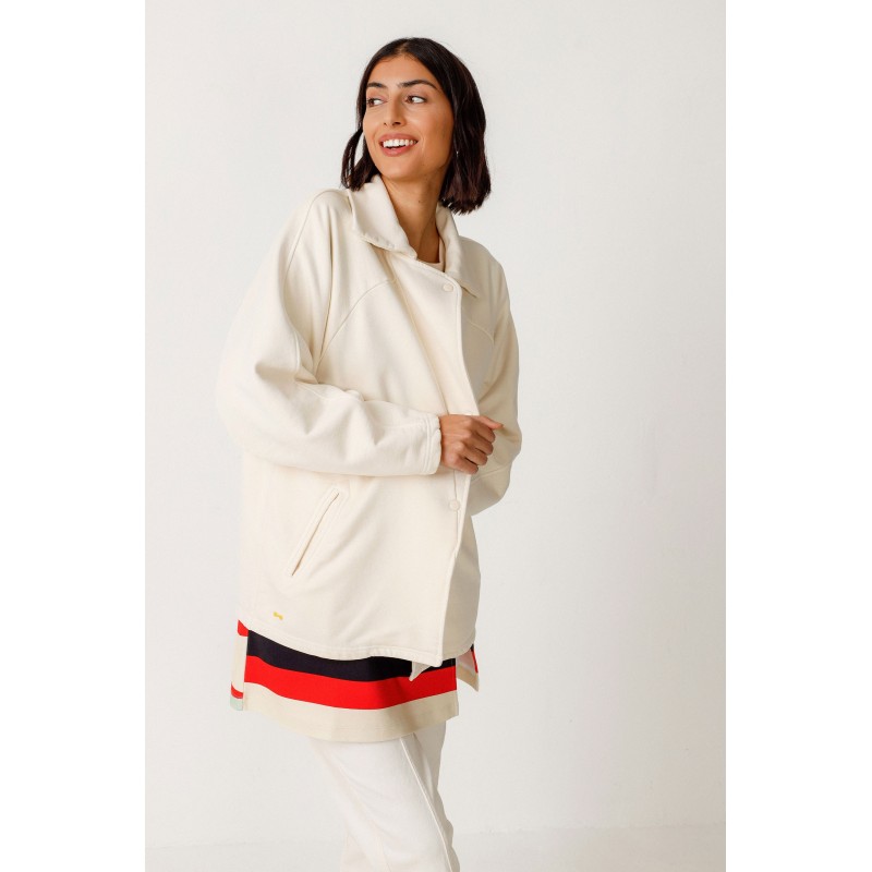 Blusa de moletom folgada de mangas compridas com cavas raglan e fechamento por botões de pressão. Ela combina conforto e estilo em um design fácil de usar. Feita de algodão orgânico com certificação GOTS.