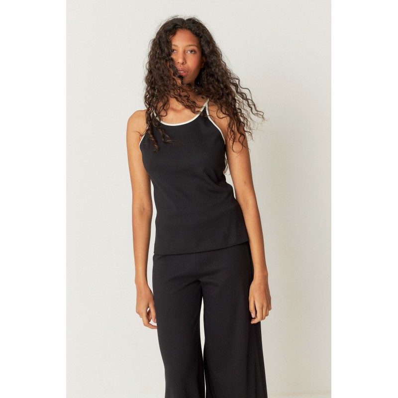 Camiseta de algodão orgânico com alça fina, gola redonda e corte slim.