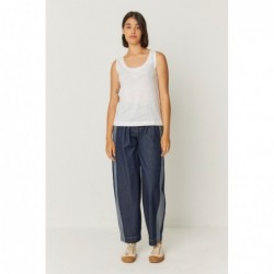 Camiseta sem mangas com decote redondo profundo decorado com malha canelada.