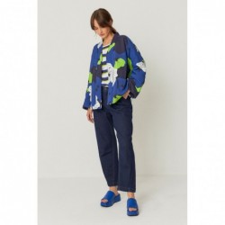 Lavagem a frio, ciclo delicado. Passar em temperatura baixa. Não usar alvejante. Não lavar a seco. Não secar na secadora. Lavar do avesso. Lavar com cores semelhantes. Passar do avesso. Não passar a estampa.