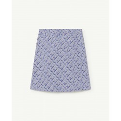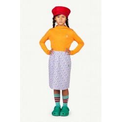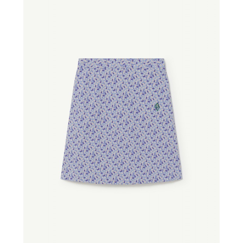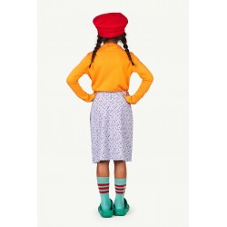 A saia Blue Swan de corte regular tem comprimento até o joelho e apresenta um pequeno logotipo na frente. A modelo tem 129 cm de altura e veste tamanho 8 anos.