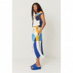 Saia midi com efeito plissado assimétrico na frente e bolsos para as mãos. Fecho de zíper nas costas.