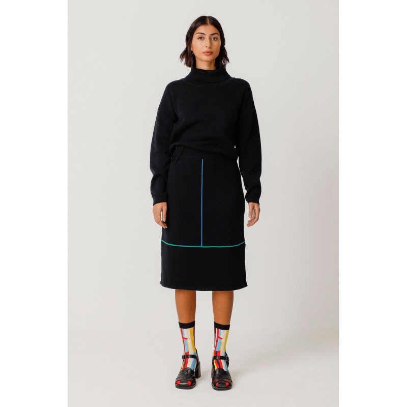 Saia de malha na altura do joelho com cós elástico, tecido de peso médio e acabamento contrastante. Adicione um toque de estilo ao seu guarda-roupa. Certificação GOTS.