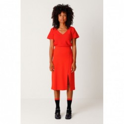 Saia em algodão orgânico com certificação GOTS. Comprimento abaixo do joelho, com fenda frontal e modelagem em A. Cós elástico confortável e tecido de malha elástica.