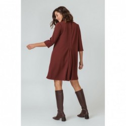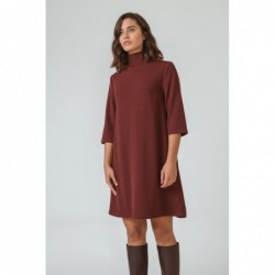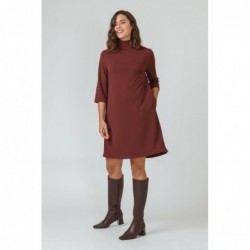 Vestido evasê acima do joelho, confeccionado em poliéster reciclado elástico. Possui gola alta exclusiva, mangas ¾, bolsos laterais e fecho nas costas com botões. Disponível na cor bordô. Em vez de jogá-las fora, garrafas plásticas podem ser usadas para fazer novas roupas com poliéster reciclado. Essas peças são macias, duráveis e economizam dinheiro na produção. A modelo veste tamanho 38 e tem 1,74 m de altura.