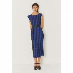 Vestido midi sem mangas com decote redondo e ombros reforçados. Modelo slip-on fácil de usar.
