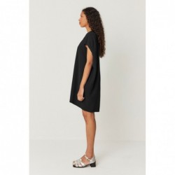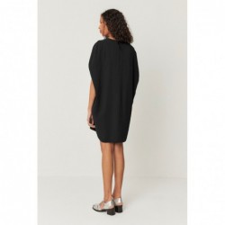 Vestido sem mangas, com decote em V e corte reto acima do joelho.