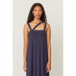 Vestido trapézio midi com alças, confeccionado em algodão orgânico com elastano.