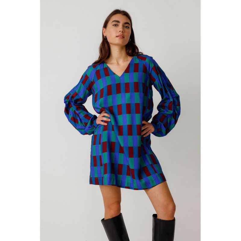 Vestido curto com decote em V e mangas compridas, modelo Irai