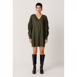 Vestido curto com decote em V e mangas compridas, modelo Irai