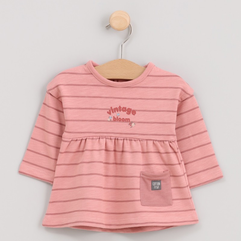 Este vestido listrado da coleção Vintage Bloom é uma peça clássica e encantadora, perfeita para dias ativos. Confeccionado em tecido macio e leve, seu design simples com toques vintage o torna uma escolha versátil e atemporal, ideal para criar looks elegantes e sofisticados.