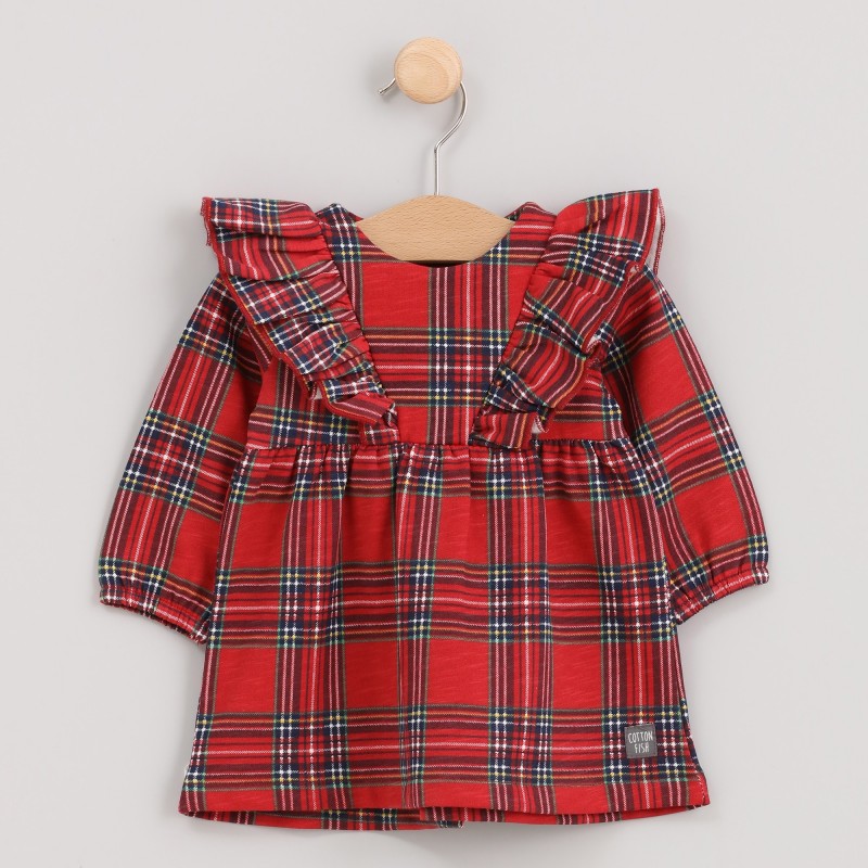 Vestido xadrez da coleção de Natal, criado para celebrar com estilo e conforto. Confeccionado em tecido macio e leve, apresenta uma estampa xadrez clássica.